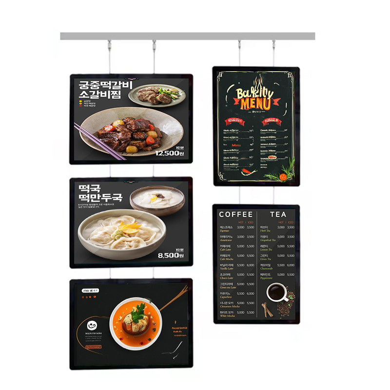 2Dikey ve yatay asma: Esnek dikey ve yatay kurulum yöntemleri sağlar,Farklı sergi alanlarına göre özgürce ayarlanabilir ve çeşitli ticari ve kamu mekanlarının düzenleme gereksinimlerine uyarlanabilirİster gayrimenkul reklamları, promosyon afişleri veya menü bilgileri göstersin, en iyi görsel etkiyi sağlayabilir.